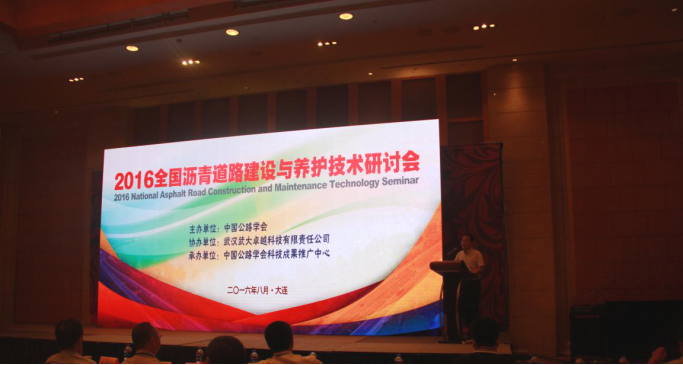 8月25日,2016全國瀝青道路建設(shè)與養(yǎng)護(hù)技術(shù)研討會在遼寧省大連市舉行。此次會議由中國公路學(xué)會主辦,武漢武大卓越科技有限責(zé)任公司協(xié)辦,中國公路學(xué)會科技成果推廣中心承辦。交通運(yùn)輸部公路局養(yǎng)護(hù)保通處處長王松波、交通運(yùn)輸部路網(wǎng)中心副處長虞麗云、交通運(yùn)輸部公路科學(xué)研究院交通公路工程研究中心主任徐劍、中國公路學(xué)會副秘書長巨榮云、武漢武大卓越科技有限責(zé)任公司總工程師林紅等多位行業(yè)專家以及300余名業(yè)內(nèi)人士參加了此次研討會。會議由中國公路學(xué)會副秘書長巨榮云主持,其中,武大卓越董事長兼總裁曹民先生發(fā)表致辭。