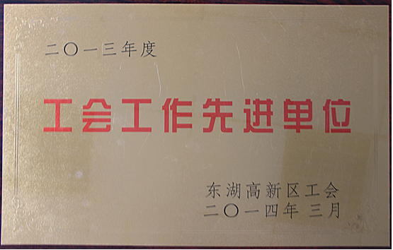此次評比表彰大會,我公司榮獲“2013年度工會工作先進單位”的榮譽,我公司工會主席陳美麗同志榮獲“東湖高新區(qū)先進女職工”、公司職工潘晶同志榮獲“優(yōu)秀工會干部”的榮譽稱號。