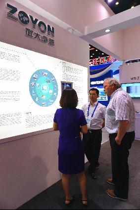 展會(huì)中武大卓越自主研發(fā)的交通資產(chǎn)管理平臺(tái),以交通資產(chǎn)“一張圖”為理念,結(jié)合交通大數(shù)據(jù)、云計(jì)算等前沿科技,獲得了眾多嘉賓的關(guān)注和贊許。圖為武大卓越董事長(zhǎng)兼總裁曹民先生與到場(chǎng)領(lǐng)導(dǎo)和行業(yè)資深專家交流交通全資產(chǎn)平臺(tái)。