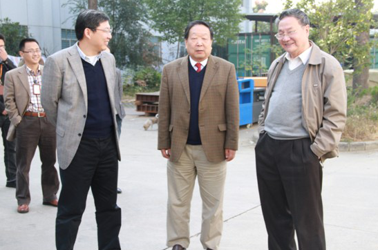 ?????院士參觀激光動態(tài)彎沉測量系統(tǒng)(從左至右公司首席科學(xué)家、武漢大學(xué)常務(wù)副校長李清泉先生陪同中國工程院和中國科學(xué)院雙院士李德仁先生、中國科學(xué)院院士許厚澤先生)