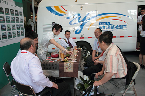 武漢武大卓越科技有限責(zé)任公司以自主研發(fā)的智能道路檢測(cè)系統(tǒng)亮相展會(huì),配以頗具中國(guó)韻味的茶藝表演,吸引了眾多參觀者。